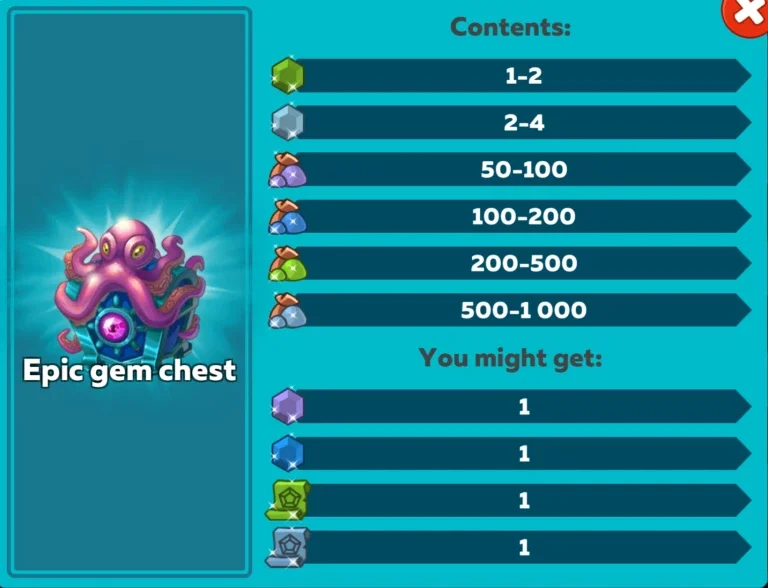 Diese Truhen können während „Schatzsuche“-Events erhalten werden. Sie können auch auf dem Markt für Diamanten und im Edelsteinbucht Shop für Kraken-Token gekauft werden.
