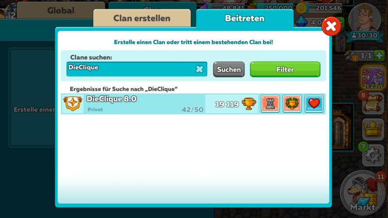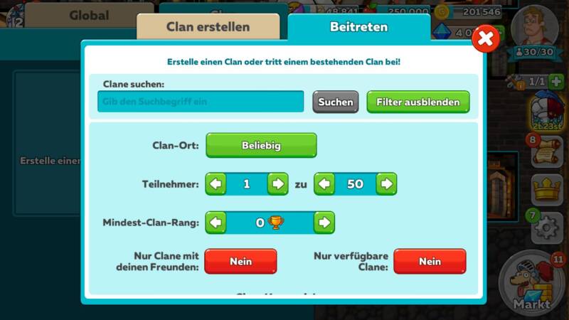 Verbringen Sie ruhig etwas Zeit damit, einen Clan zu finden, der zu Ihrer Spielweise passt.