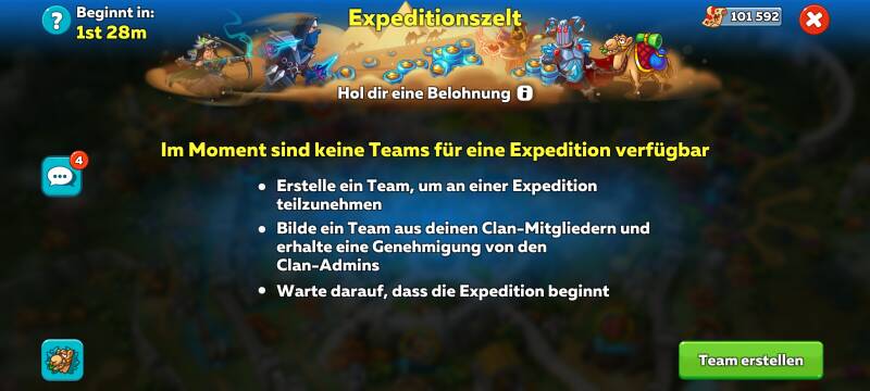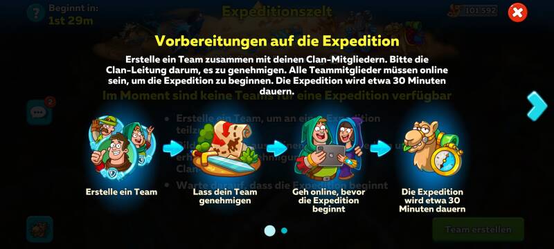2.) Wenn die Expedition beginnt, müssen alle Teammitglieder bereit sein, um zu starten und zu starten. Andernfalls wird die Expedition abgesagt und die Karten zurückerstattet