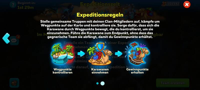 3.) Auf der Expeditionskarte möchten Sie nach dem Start Wegpunkte vor den Kamelen erfassen, indem Sie Einheiten darauf platzieren, um zu kämpfen. Von der Karte, die wir gespielt haben, waren insgesamt 5 Kamele