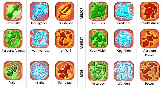 Wie bereits erwähnt, kann jede Rune nur auf eine Art von Ausrüstung angewendet werden (Rüstung, Waffe, Ring, Amulett oder Artefakt). Einige können auch nur auf eine Klasse angewendet werden > Tank, Magier oder Bogenschütze < Die Klasse wird durch die Waffe definiert.