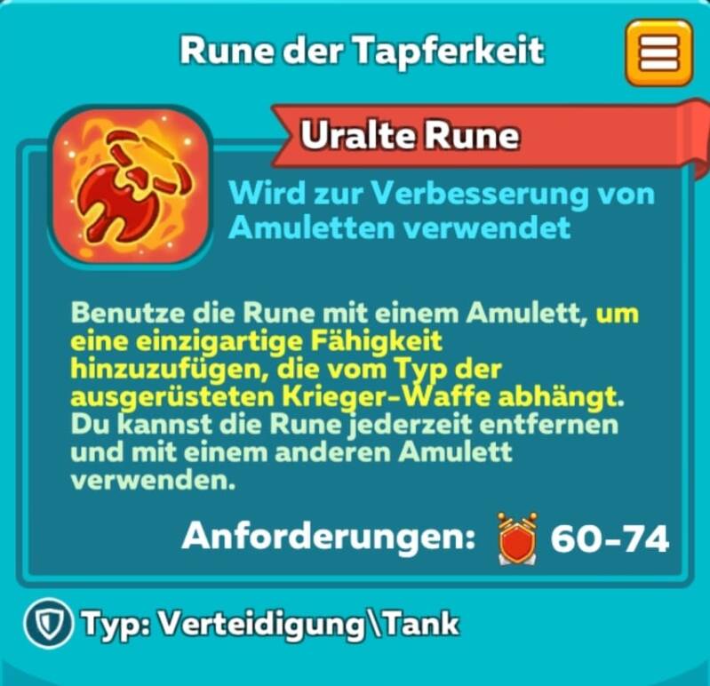 Rune der Tapferkeit * Tank * Amulett * 03/2023